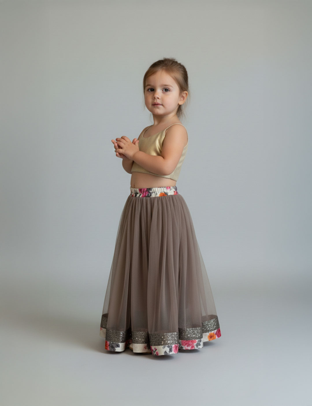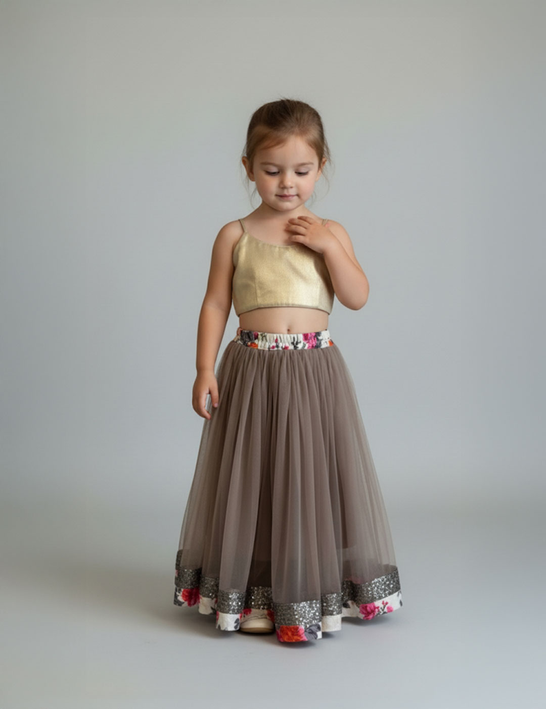 A flawless A-line silhouette crafted from layers of premium, soft tulle. This exclusive piece offers a comfortable yet opulent fit, delivering a sophisticated, festive vibe for young trendsetters. Absolute elegance, redefined.